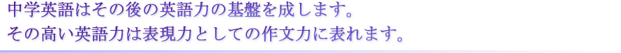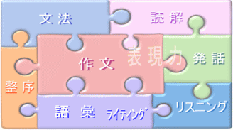 この中で英作文の力は語彙力・文法力・整序の力を内包し、同時に読解力の向上につながります。 また作文を発話することでその力は会話力に直結します。 独立したトレーニングを必要とするリスニングの力を別にすれば、英作文の力は表現力として英語学習の大きな到達点であり、作文力を高めることは英語力を総合的に高めることにつながります。 この講座は中学生を対象に、作文力の向上を目標に据え、高い英語力の育成をめざします。 |